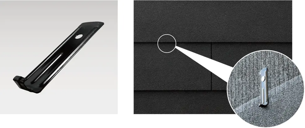 専用部材「省施工耐風クリップ」。