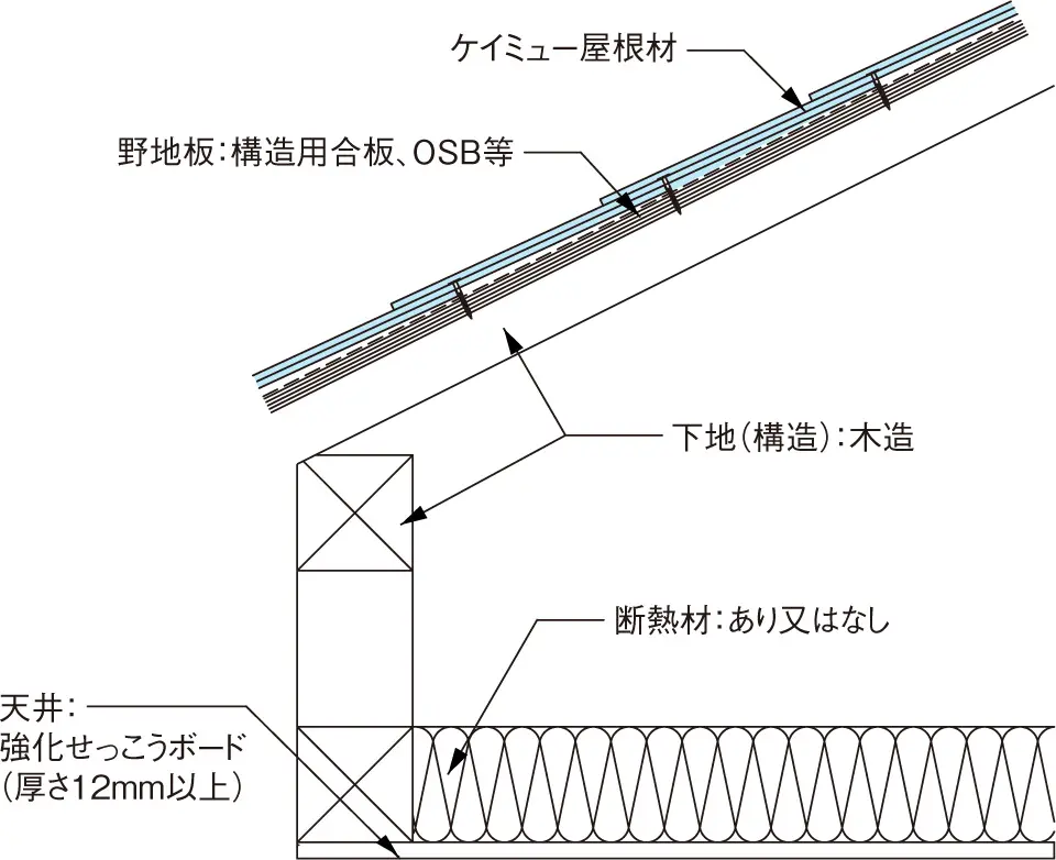 | 野地板 | 厚さ9mm以上の構造用合板、構造用パネル、パーティクルボード、硬質木 片セメント板その他これらに類するもの | |