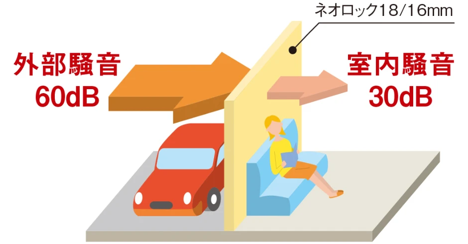 人の耳が最も敏感な250-1000ヘルツの音域で、優れた遮音性能を発揮。外からの騒音はもちろんのこと、中からの生活音の漏れも軽減します。