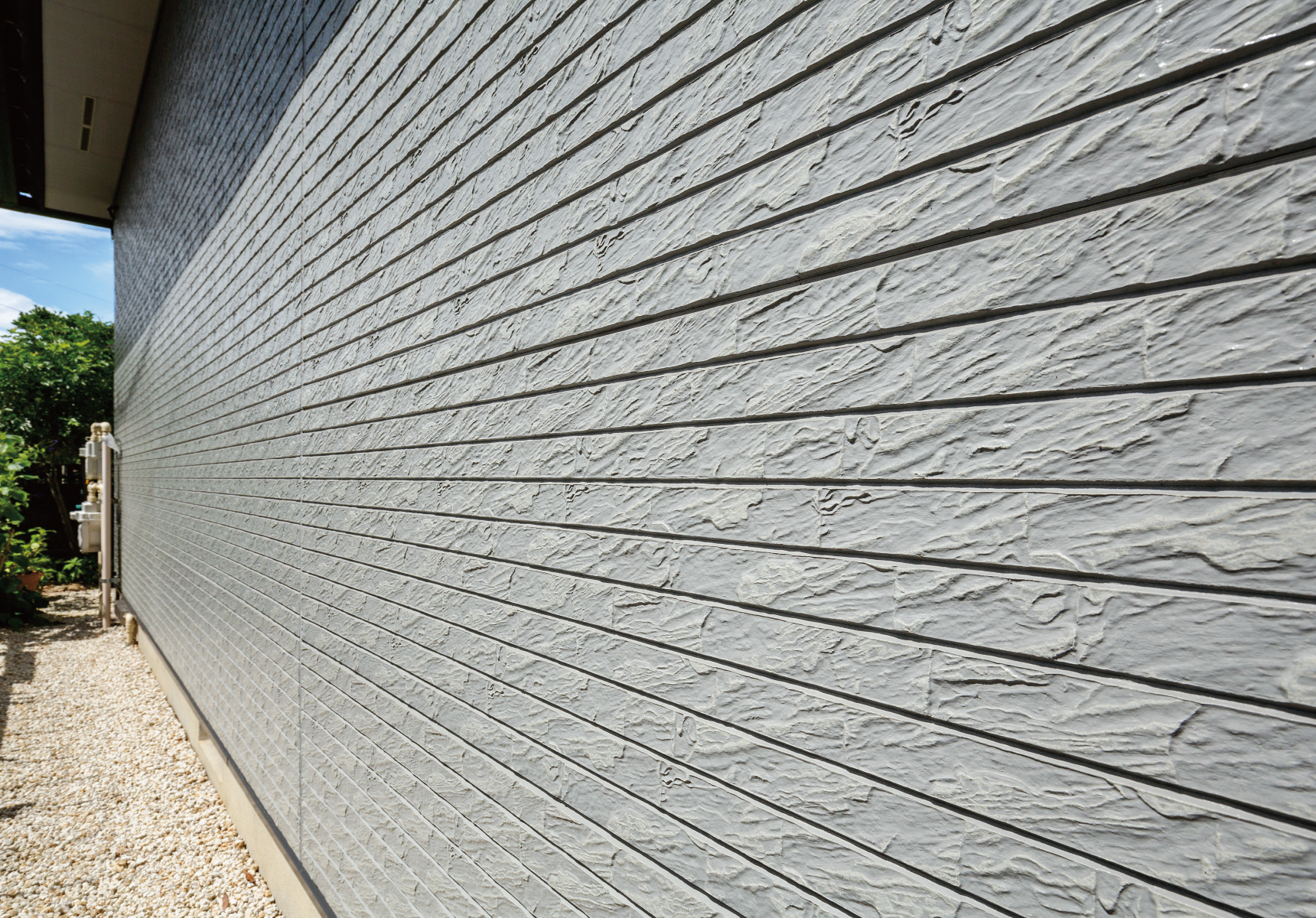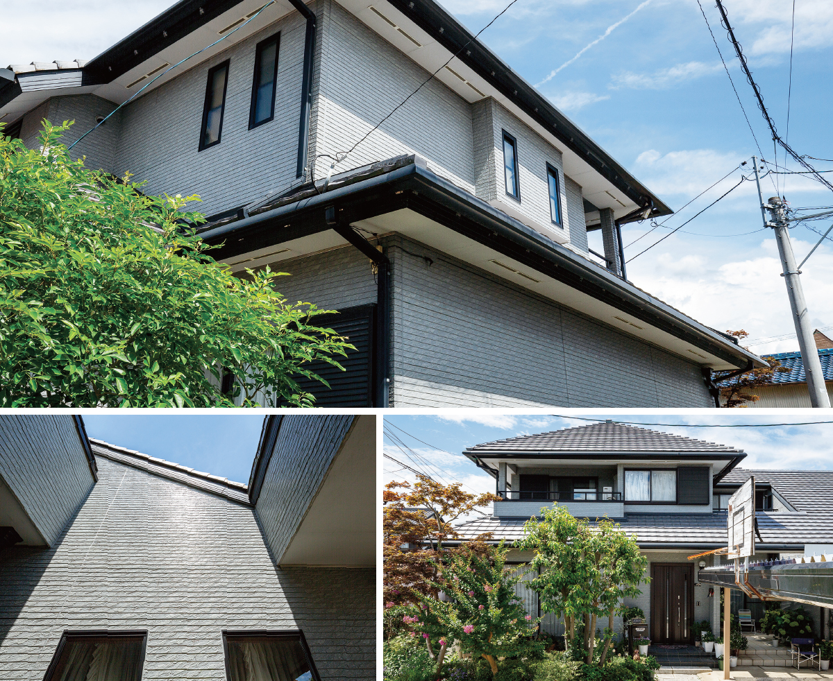 むき出しだった外構には、24年の間でブロック塀ができましたが、外観の印象は変わっておらず、外壁塗膜にも特に劣化は見られません。