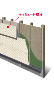 既存外壁に耐震補強工事を行なった後、ケイミュー外壁材を重ね張りする工法です。