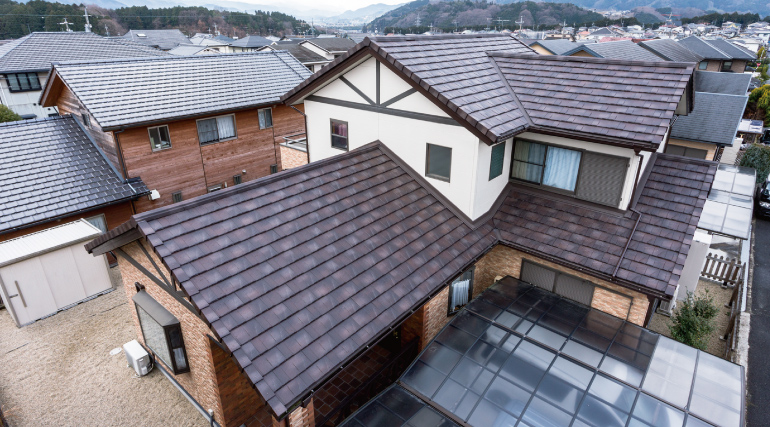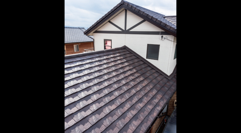 使用屋根材:ルーガ[鉄平] ストーン・ブラウン「Re 住工法」採用