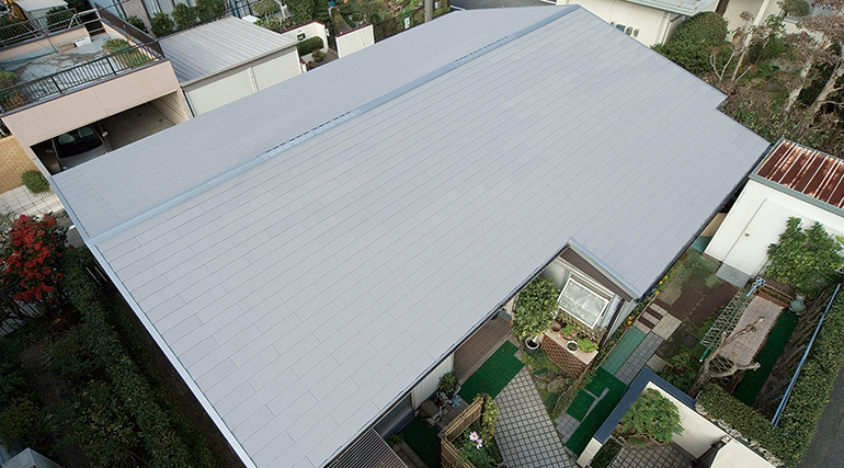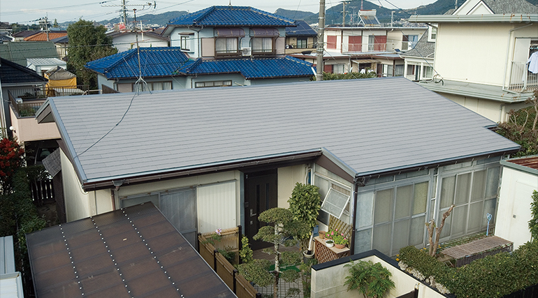 使用屋根材:カラーベスト/コロニアル遮熱グラッサグラッサ・クールシルバー 「快適!熱シャット工法」採用