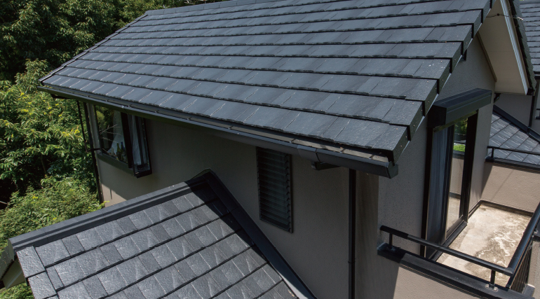 使用屋根材: ルーガ[鉄平] ストーン・ブラック「Re 住工法」採用