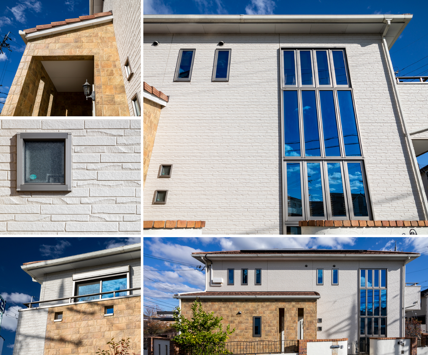 窓の面積を大胆に広く取った設計。窓と壁面の質感の対比が生み出す美しさは、今も新鮮に写ります。