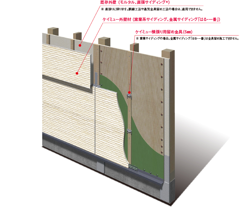 | 既存外壁仕上げ | モルタル壁 、 直張りサイディング ※3 | ||