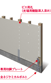 ビス用孔と専用柱脚プレートを施工。