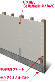 ビス用孔と専用柱脚プレートを施工。
