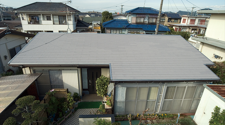使用屋根材:カラーベスト/コロニアル遮熱グラッサグラッサ・クールシルバー 「快適!熱シャット工法」採用