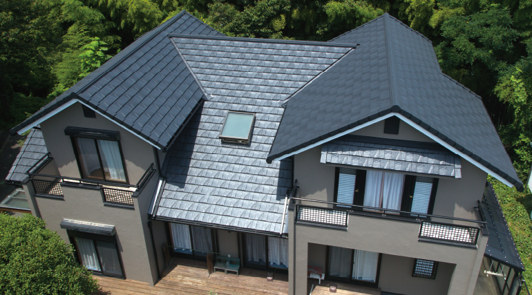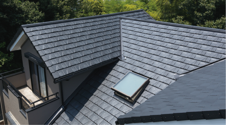 使用屋根材: ルーガ[鉄平] ストーン・ブラック「Re 住工法」採用
